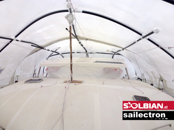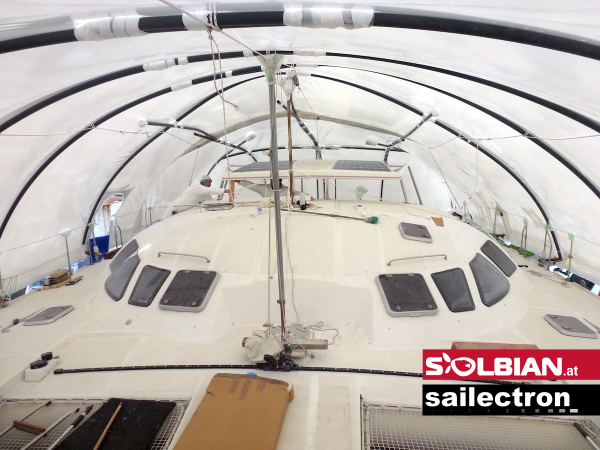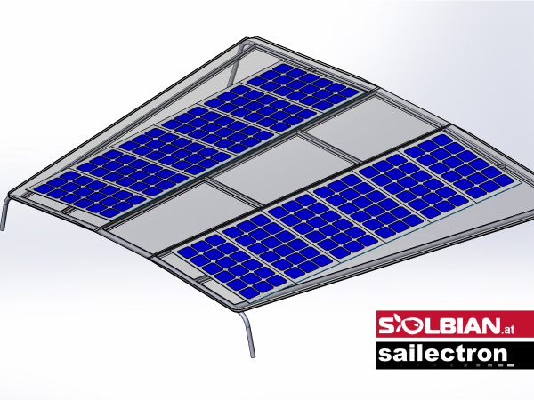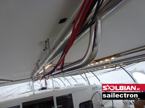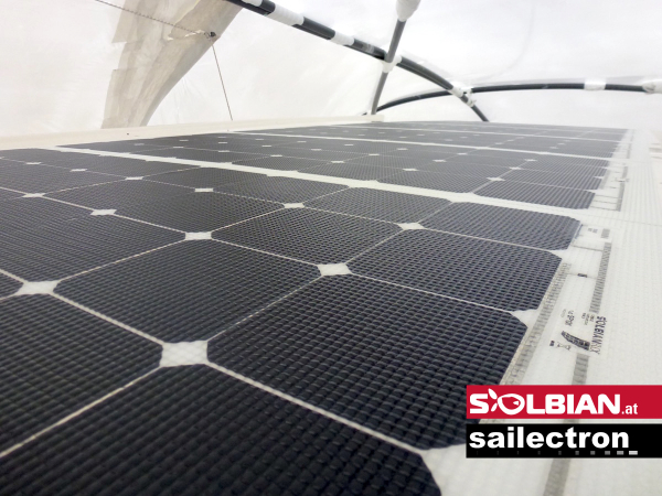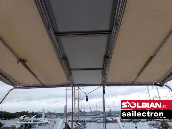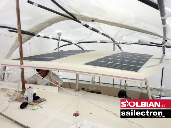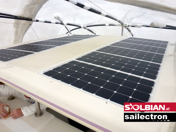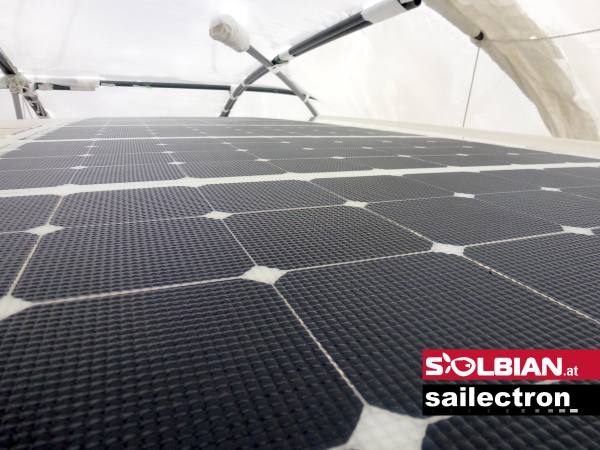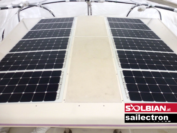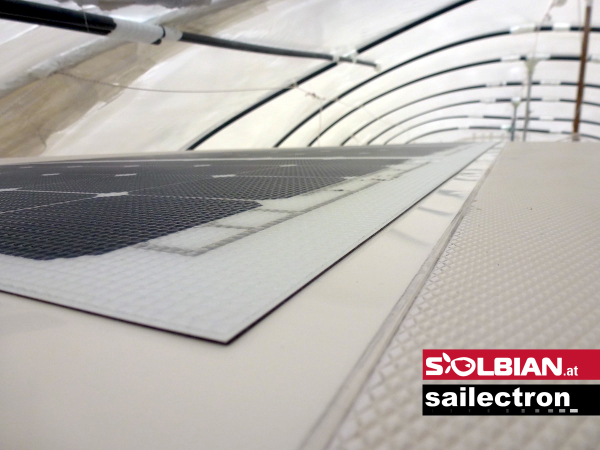 Our partner Sailectron has redesigned the fabric roof of this 64 foot Outremer catamaran to be fully walkable and house 12 SP-100 panels with structured surface.