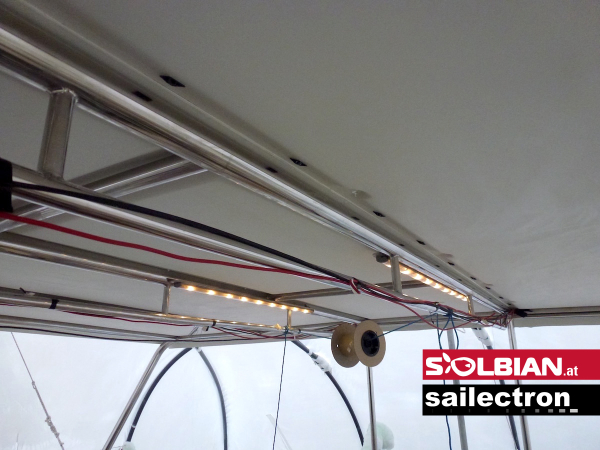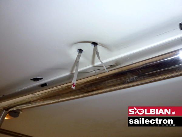They lead to 6 Victron Energy BlueSolar controllers (two panels per controller to minimize shadow effects) which have been reprogrammed to fit the Li-Ion battery bank of the Yacht.