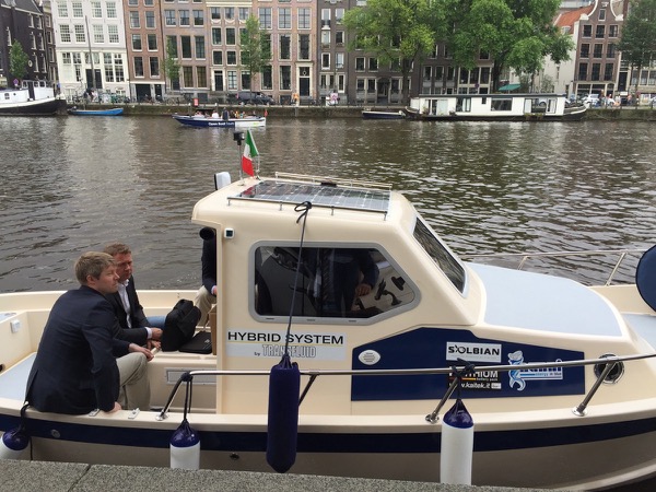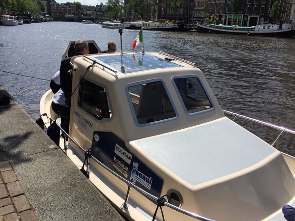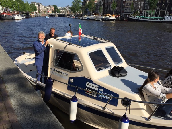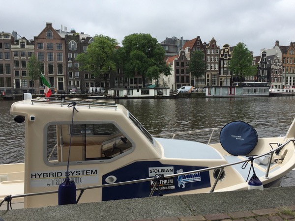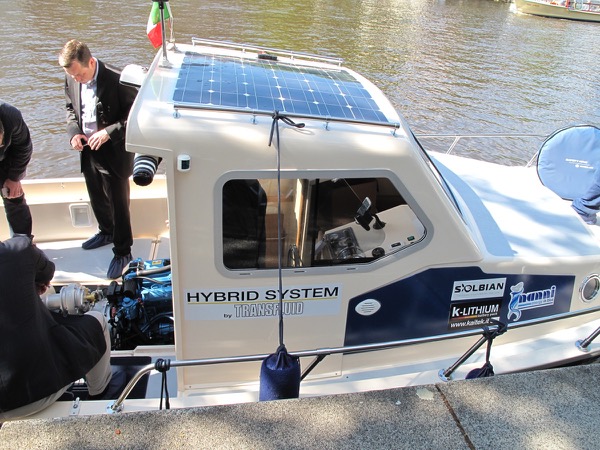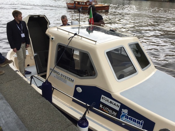 During the recent Electric and Hybrid Marine World Expo held in Amsterdam from June 21 to 23, 2016 Transfluid presented a hybrid propulsion boat equipped with a Solbian solar panel.