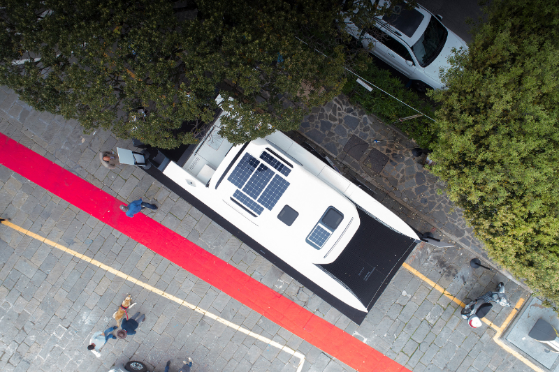 For this project Solbian identified in the SP series the perfect choice in terms of power, resistance and aesthetics. Three flexible solar panels SP 100 and two SP 50 cover the roof of the catamaran while another SP 50 is installed on the front of the cabin.