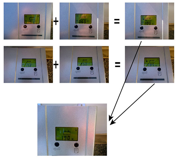 Nessuna sorpresa, il regolatore ha funzionato alla perfezione riuscendo a spremere dai due moduli, nonostante il tiepido sole invernale, quello che era possibile spremere. Utilizzando il display del WRM30 abbiamo infatti verificato la completa indipendenza dei due pannelli, con il CP125 che immetteva 6,3 Ampere di corrente a 16,1 Volt per una potenza di 100 W tondi tondi, e il modulo SunPower che invece arrivava a 85 W con 5 Ampere e 17,3 Volt (da notare, in entrambi i casi, la piccola differenza tra il valore della potenza e il prodotto Volt * Ampere, dovuta alla perdita, comunque molto piccola, del regolatore). Ma la soddisfazione era ancora maggiore leggendo sul display il valore cumulato, che in alcuni momenti più soleggiati ha raggiunto i 190W.